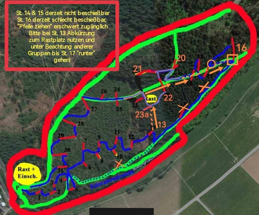 unser Parcours mit 31 Pflöcken ausgestattet. An dem ein oder anderen kommt noch ein roter Pflock dazu.