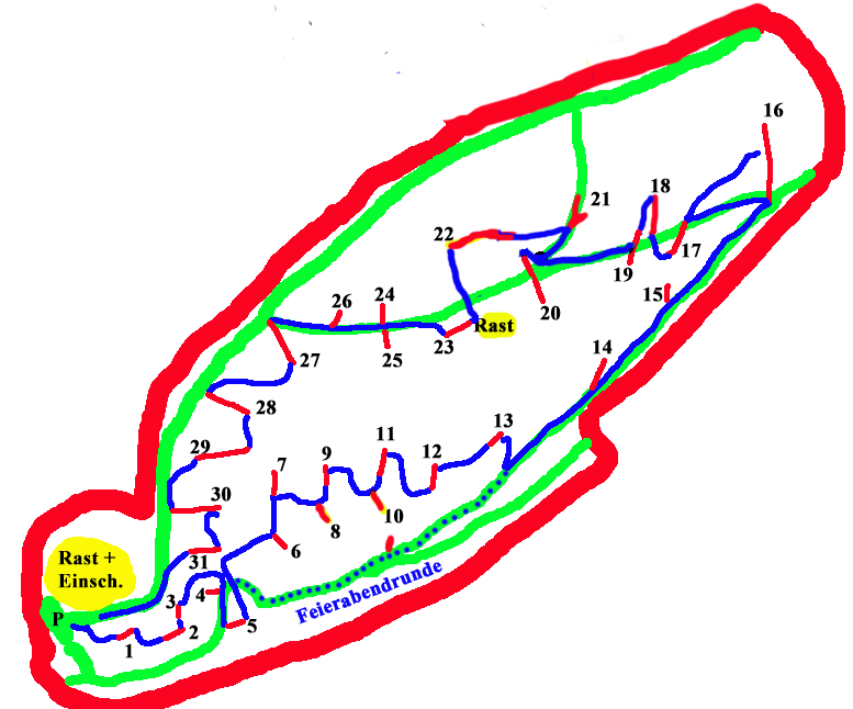 unser Parcours mit 31 Pflöcken ausgestattet. An dem ein oder anderen kommt noch ein roter Pflock dazu.